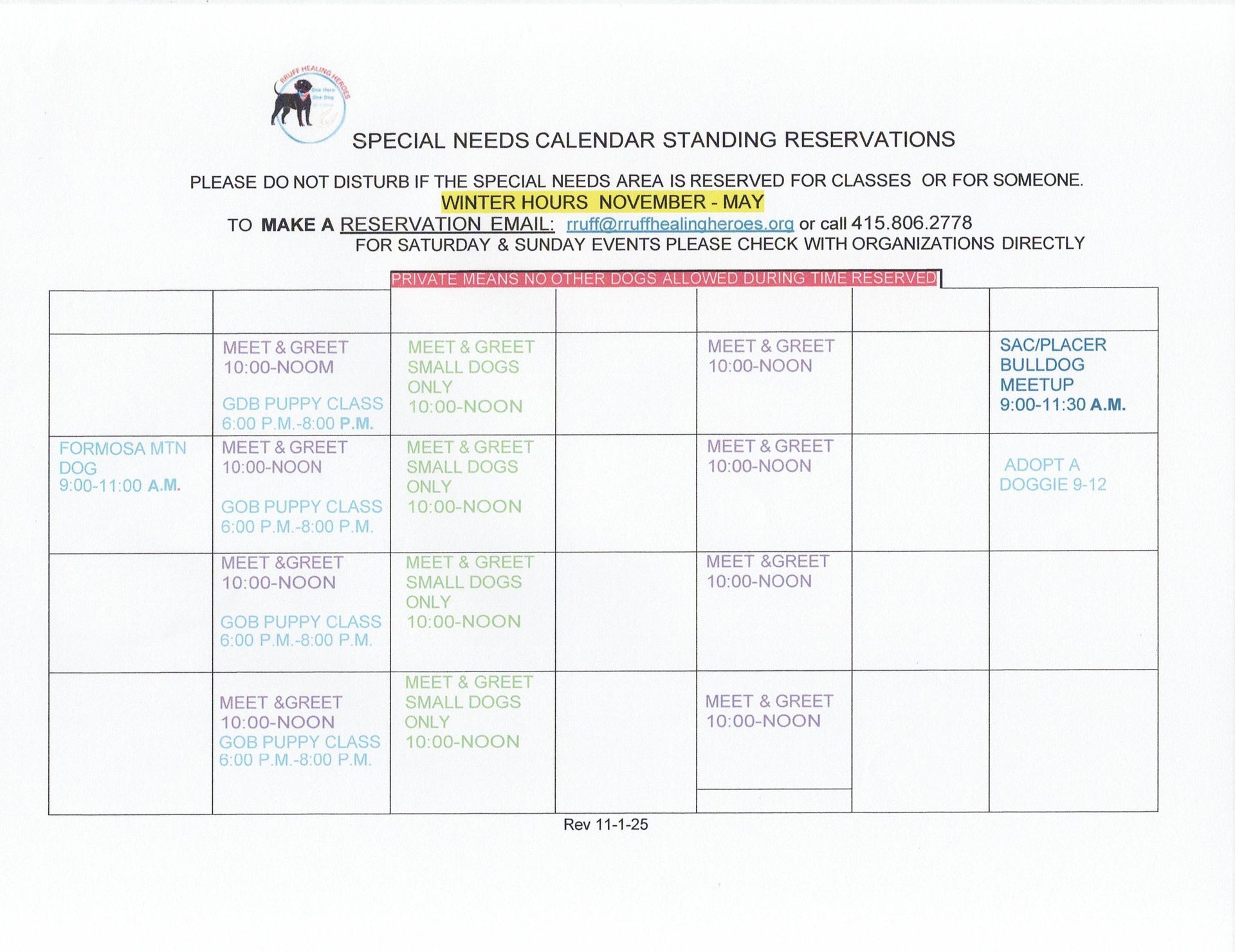 Join our furry family members at our Meet & Greet events in the Special Needs Area of the RRUFF Dog Park, inside Johnson-Springview Park, 5480 5th St., Rocklin.